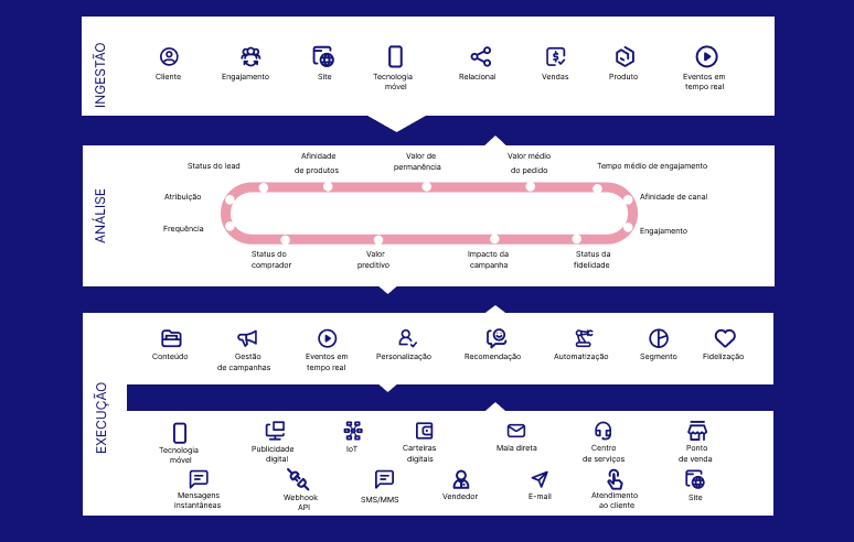 Contar com os dados centralizados e integrados, prontos para análise em tempo real, é um fator necessário para o sucesso de cada pilar de sua estratégia de personalização omnichannel.